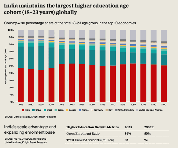 Shishir Baijal, International Partner, Chairman and Managing Director, Knight Frank India, said, “India today presents one of the most compelling prospects for global higher education expansion. With 155 million young individuals in the higher-education age bracket and strong economic momentum, the country offers unmatched scale and long-term demand certainty. The entry of leading foreign universities will elevate academic quality, strengthen research collaboration and create significant economic value. As these institutions establish campuses, they will also catalyse specialised real estate development, unlocking new opportunities across India’s education and innovation ecosystem.”